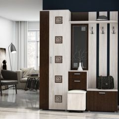 Состоит из: крючки для одежды, обувницы, открытой ниши для обуви, открытых полок, зеркала, полки для головных уборов, шкафа для одежды.