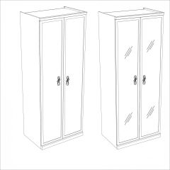 Базовая комплектация шкафа: Шкаф 2-х ств, комплектуется штангой, петли с доводчиками