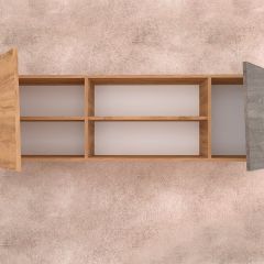 2. Фасады в цвете Цемент светлый обрамлены цветной кромкой Дуб золотой в цвет корпуса.